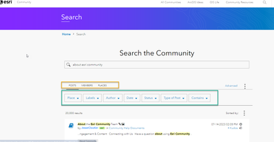 How to search and apply filters in Esri Community