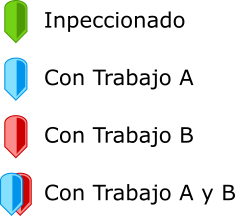 Lo que se quiere hacer es que en un mapa los puntos inspeccionados que tengan relacionado uno o mas formularios A se representen de forma distinta a los que tienen relacionado un o mas formularios B, a los que tienen relacionados formularios A y B y a los que no tienen relacionado ningún formulario.