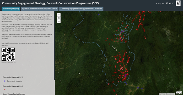 (From Storymap Narrative: "The community mapping activity in the highlands involves the members of the local community to mark locations or areas that are important for their livelihood and significant to their history and culture. Commences in 2016, the previous method involves the usage of handheld GPS devices, cameras and paper forms to record their data.