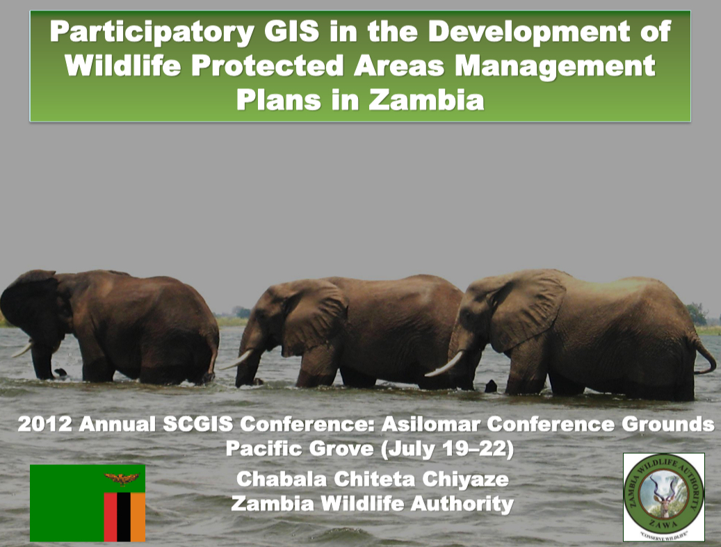 To effectively manage park resources, managers need accurate information to recognize changes in ecosystems and to link trends with causes so that natural and anthropogenic threats may be distinguished. High quality information is necessary to identify trends and respond to them intelligently and deliberately. Such information is essential to ensure that rational and ecologically sound decisions are made concerning development, mitigation, monitoring and other management issues. implementation of a GIS tool as a high-priority is required for Park personnel and other managers to evaluate land and resource use alternatives while also considering environmental impacts, economic implications and potential use conflicts thus assisting all National Parks and Game Management Areas interpretation, ranger activities, research, resource management, maintenance and administration/management. Through Zambia Wildlife Authority and SCGIS I participate in data sharing and GIS campaign awareness. I have been a member of SCGIS Zambia Chapter from its inception and have been an active member participating in all chapter activities.