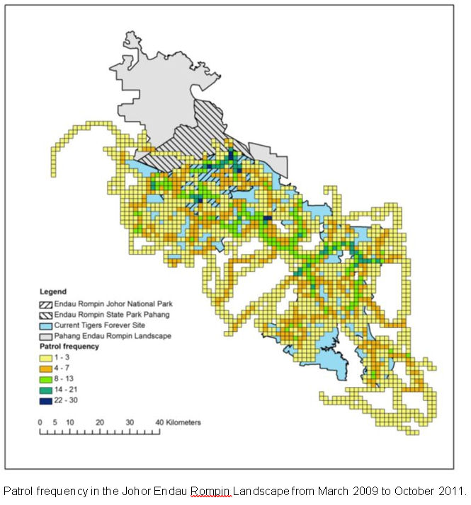 What is your work in your local conservation and GIS community? WCS-Malaysia Program has an important commitment to the Johor Wildlife Conservation Project. The aim of JWCP is to ensure the future of wildlife and their habitat at the Endau Rompin Landscape through various components such as capacity building of the enforcement staff in the government departments, law enforcement activities with relevant enforcement agencies and monitoring of tigers and their prey to measure the success. The project is supported by the Royal Family of the State of Johor in Malaysia and the State Cabinet of Johor. The stakeholders of the projects are the Johor National Parks Corporation, Department of Wildlife and National Parks, Forestry Department, Royal Malaysian Police, State Department of Town and Country Planning, State Economic Planning Unit of Johor, Department of Orang Asli Affairs of Johor. The long-term conservation goal is pursued through policy work, law enforcement activities with all relevant enforcement agencies, human-wildlife conflict mitigation, community outreach and monitoring of wildlife. All of this work is done in collaboration with the federal, state and local government agencies and in collaboration with several important local plantation owners. Update meetings are held regularly to discuss and plan for conservation interventions within the landscape.