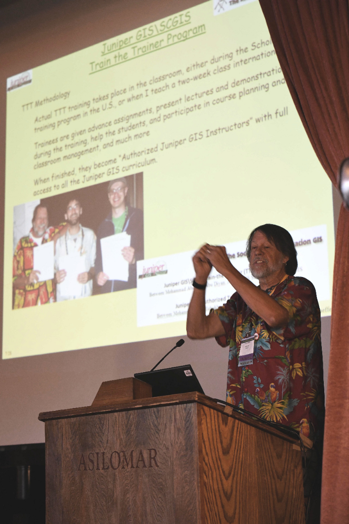 practitioners with scholarships, training, networking events, and knowledge sharing opportunities. We have taken pride in being the only organization that directly serves conservation GIS practitioners. Our Annual Conference is an extremely unique opportunity to bring together and connect our international community. This year’s Annual Conference theme focuses on “Bridging the Nature-Human Divide.” Our theme encourages us to explore our connections with the natural world, address growing environmental challenges like global climate change and species extinction, and find ways to strengthen our connection to nature. As conservation geographers and GIS practitioners, we have an opportunity to forge new paths in this realm using our spatial analysis and map-making skills by helping to protect wildlife, developing strategies to build greener cities, working with local communities to sustainably manage their natural resources, and monitoring environmental change. Our conference’s keynote speaker, Mr. Robin Grossinger, Senior Scientist at the San Francisco Estuary Institute and Co-director of the Resilient Landscapes program, will share his efforts to reintegrate natural processes within highly modified landscapes in California in order to create healthier and more adaptive neighborhoods, cities, and surrounding landscapes. This conference will also provide an opportunity to gather together approximately seventeen participants in the SCGIS Train-the-Trainer (TTT) program. These outstanding individuals who come from all over the world, have attended previous SCGIS conferences as part of the SCGIS International Scholarship Program. They have each taken initiative to further develop their technical and teaching abilities through this unique SCGIS training program so that they may train others in their region. As part of this year’s program, the TTT participants will receive training at Esri’s headquarters in Redlands and at the University of California, Davis. Through this program, SCGIS is proud to engage in developing a worldwide footprint of conservation GIS training capacity and community support! I am happy that you have chosen to spend part of this week sharing, learning, and engaging with the SCGIS community. I hope that you spend your time learning new skills and knowledge through a variety of scheduled technical workshops and presentations, meeting your fellow attendees at our social gatherings, and taking time to enjoy the natural beauty of Asilomar. Thank you for your support of SCGIS!" (photo Alejandro Ruben Vila )
