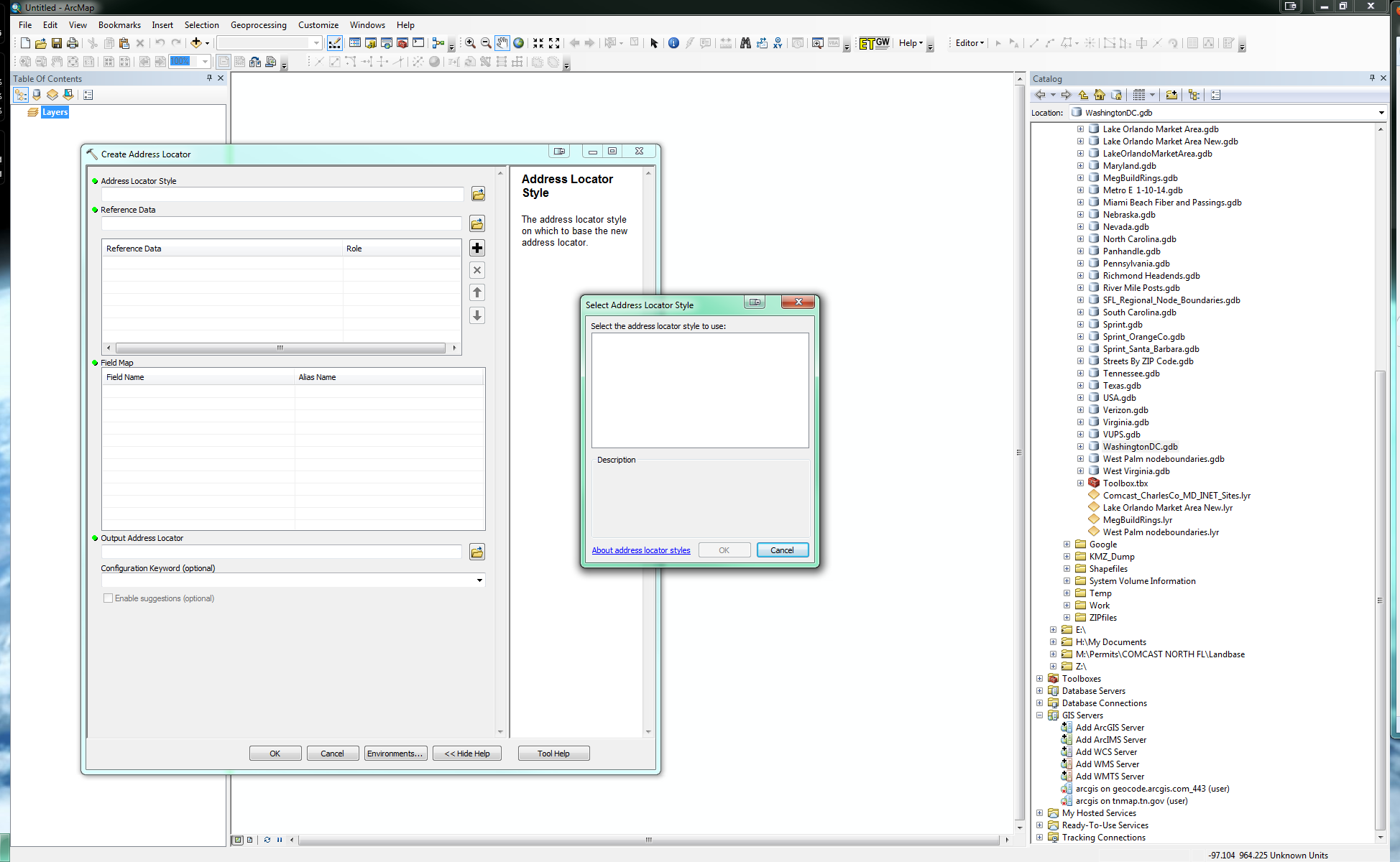 I'm trying to create an address locator for Washington DC to geocode a list of addresses, something I've done several times for other areas. Today when I went to pick the Address Locator Style, the dialog is showing up empty (see attached picture).