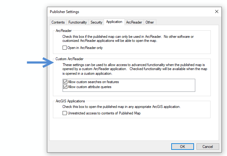 Are you needing this Publisher setting? or uncheck "Open in ArcReader only"