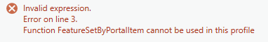 I have a question in relation to Arcade expressions. What I am trying to do is obtain a feature set from a feature service for my attribute rule. The FeatureSetByName code that I used for configuring pop-ups worked as expected. However, the same code did not work when configuring attribute rules. The error (001841) says "The table was not found."