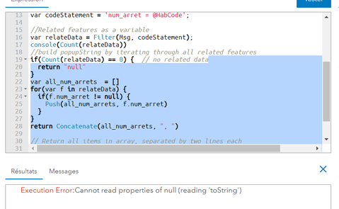 It works great except when the feature has no related records. I still get a FeatureSet returned, and I would expect it to contain zero features. But any method I use to access the FeatureSet returns "Execution Error:Cannot read property 'toString' of null". I've tried all of the following: