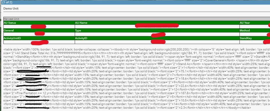 The problem is that the results of the Arcade field are displayed as raw HTML in the popup in the Web Browser.