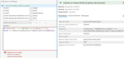 In ArcGis Pro 2.9.5 with Calculate Fied, i split a french date text and i want insert in Date Field.