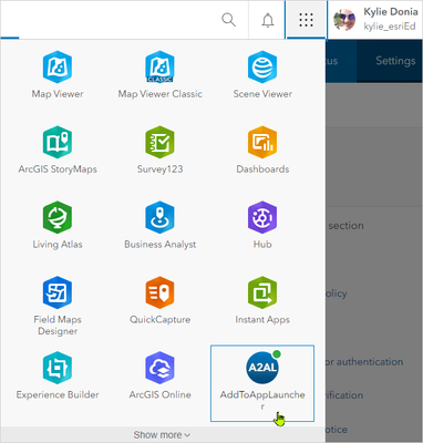 A familiar workflow is to access apps through the ArcGIS Online app launcher (opened via the Apps button - aka the waffle icon). Org admins can add other apps, websites, and documents into the app launcher. They don’t have to be Esri ones. And you can even control which apps appear for which users. All this in 3 steps: