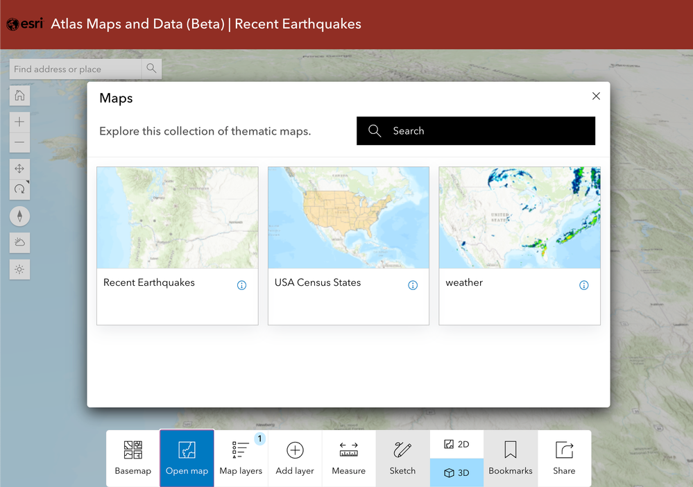 I built a quick example of the Atlas Instant App with a few simple maps available under “Open Map”.
