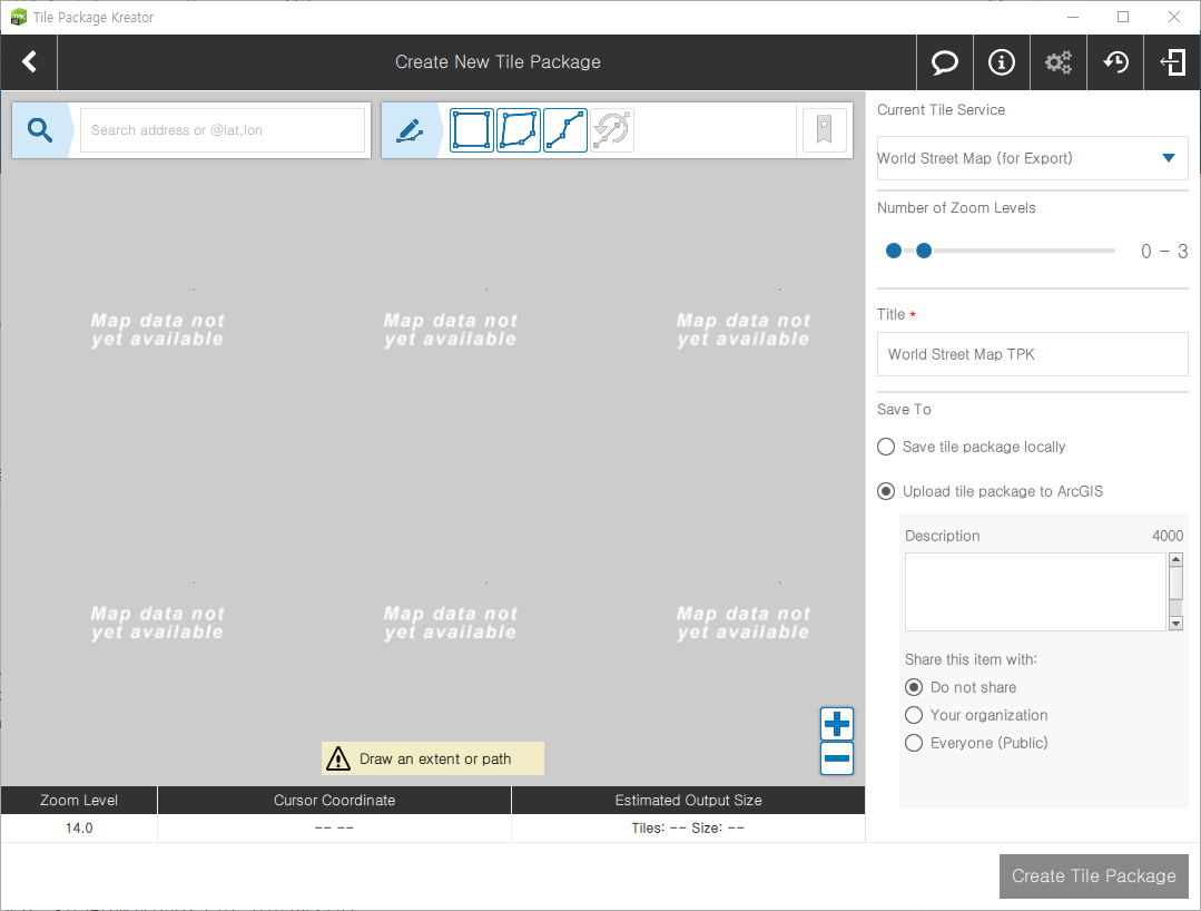Basemaps on Tile Package Kreator are hosted in tiledbasemap.arcgis.com.