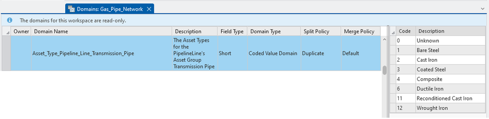 The AssetType valid value picklist for transmission pipe and gathering pipe align with the federal reporting material classifications.