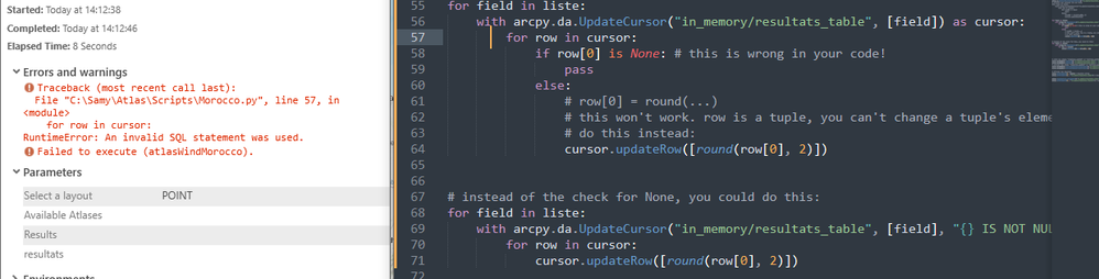 Hello, I created a function to round the values of the results on my script which queries the atlases by selecting a layout, but when executing it I have the following error: An invalid SQL statement was used.