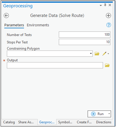 There are several types of analysis provided by the Network Analyst extension, this Article uses routes as they are very easy to work with...the only required inputs are at least two valid stops points. This characteristic makes it a good choice for demonstrating how to generate data and use it in a load test against a route service.