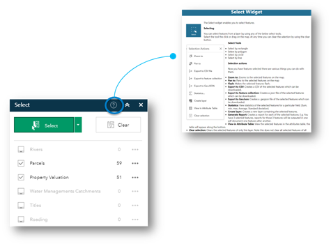 Users can now see step by step how to use a widget in LocalMaps by clicking the info icon located in the top right of the widget header.