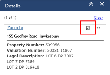 For example, in the below image a feature query has been configured to display the number of wells that intersect with this parcel. If there are multiple wells, you can scroll through and view the attribution by clicking the arrow button. If there are no wells that intersect this parcel, the popup will show only the parcel attributes as set up in the webmap.