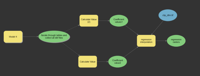 4- Lastly, create a final model with the raster calculator using the last two sub model where we itertae through the list of both coefficient values.