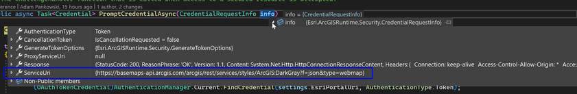 var credential = await AuthenticationManager.Current.GenerateCredentialAsync(esriPortalUri);
