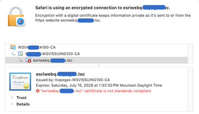 "<cert(0x16e661400) s: esriwebq.mydomain.loc i: mydomain-WSVISSUING100-CA>",