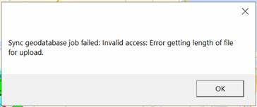 I am using ArcGIS runtime SDK for .NET 100.5 to develop a WPF application. I am using this sample code https://developers.arcgis.com/net/latest/wpf/guide/sync-offline-edits.htm to synchronize the *.geodatabase. Most of time, it has been working well, but one of my users failed to sync his data today. He got an error message below: