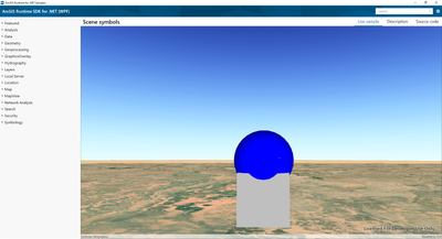 SimpleMarkerSceneSymbol testSymbol = new SimpleMarkerSceneSymbol(SimpleMarkerSceneSymbolStyle.Sphere, System.Drawing.Color.Blue, 100, 100, 100, SceneSymbolAnchorPosition.Center);