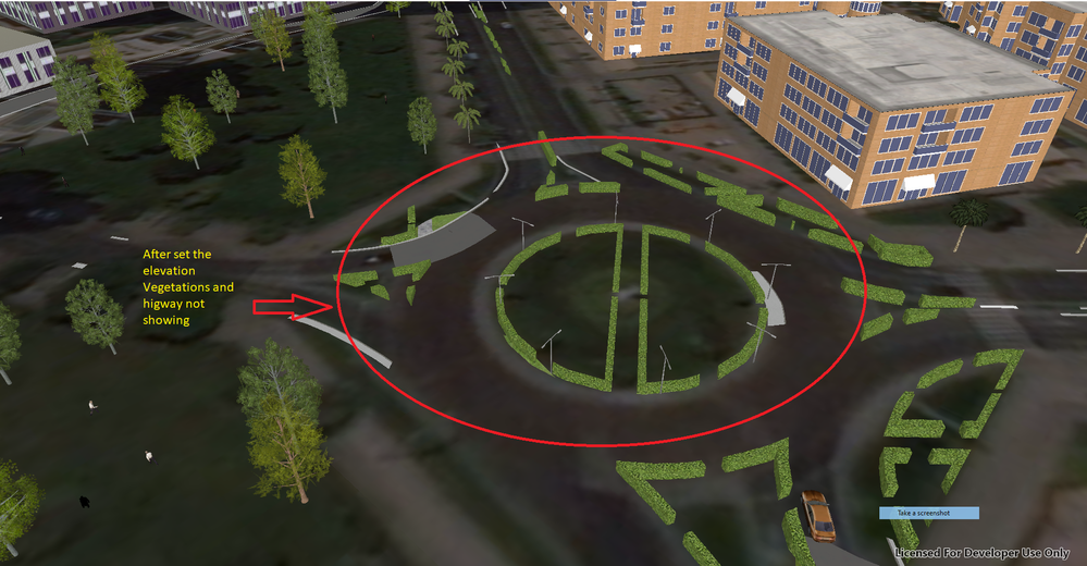 Could you set an offset of 1 meter to the Building, vegetation and highway roads layers while aligning the features to terrain?
