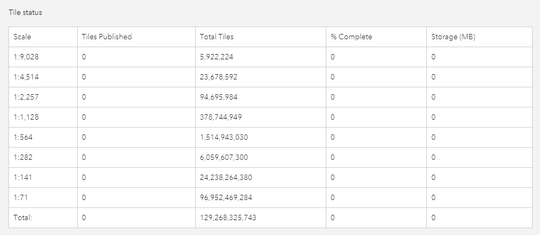 I'm trying to publish some drone imagery to Portal as a tile service (about 150 acres captured from 400 ft with a 3.2 cm cell size... the orthomosaic tiff file is 2.1 GB, or 10 GB uncompressed), but the necessary tile cache for the tiling scheme I want is estimated to be in the terabytes. I need to publish all the way to zoom level 23 because the imagery will be used to identify vegetation classes, so resolution is important.