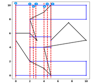 In the figure to the right, there are 4 sweep lines which are identified where the two polygons share a common point. The common points are 0, 1, 2, 3).