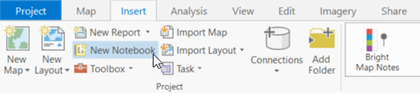 1. To get started with notebooks in Pro, open a new project and from the Insert ribbon click New Notebook.