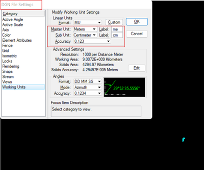I discovered the issue was due to the units in the DGN file not being set to meters.