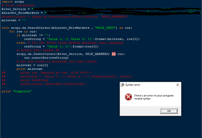 with arcpy.da.InsertCursor(River_Section, 'MILE_MARKERS') as incur: