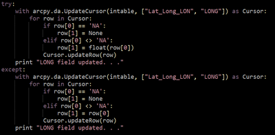 Essentially I am trying to get xy coordinates from a CSV. I have already converted the CSV to DBase and added 2 new double fields for LAT and LONG. But the original latitude and longitude values are in string type fields and contain "NA" values for some of the coordinates. I can remove the NA fields using a cursor because they are useless for plotting xy coordinates but I still am unable to copy the coordinate data from the string type columns to the new double type columns.