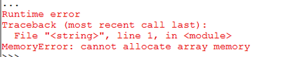 The array memory error typically occurs when the script tries to create an array that's too large for the available memory, how big is the data?