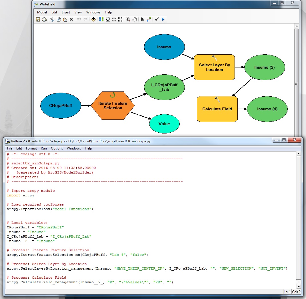 I'm trying to write in test field from some layer based on iterate feature selction. I get succes using model builder but I'm fail when I try with my own code.