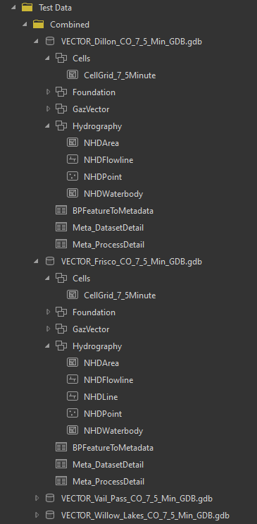 I have a geodatabase which consists of about 100 feature datasets, and each feature dataset contains 2 to 4 feature classes (Please see an example of my geodatabase and its contents).